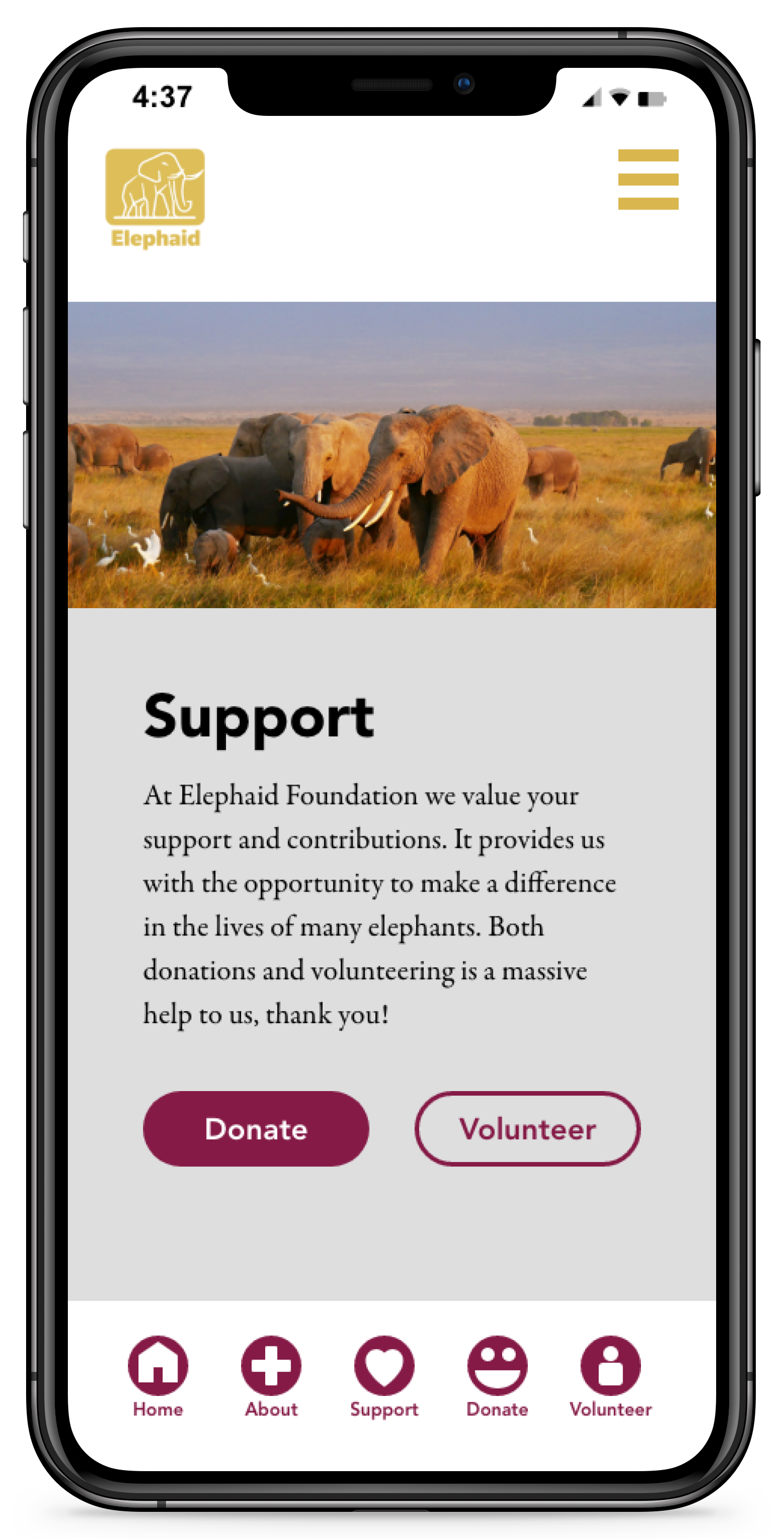 The Elephaid Foundation is a non-profit organization whose mission is to protect the elephant population. The Foundation launched a mobile app but they discovered through user research that the app had critical functionality issues. This project’s goal was to optimize the current mobile app.